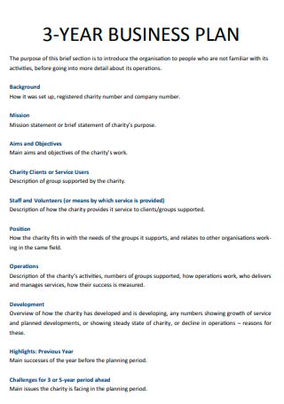 three year business plan example