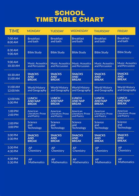 timetable chart ideas for high school