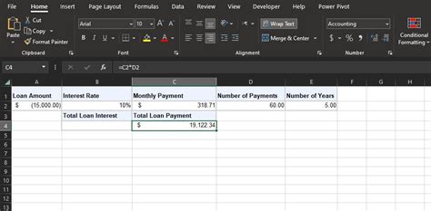 total loan payment formula excel