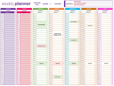 weekly planner format excel