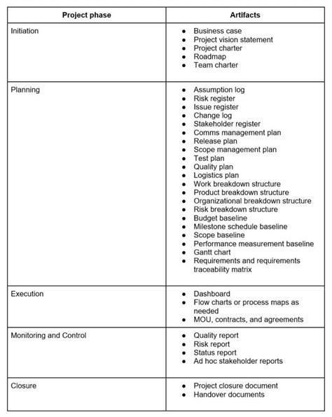 what is an example of a project artifact