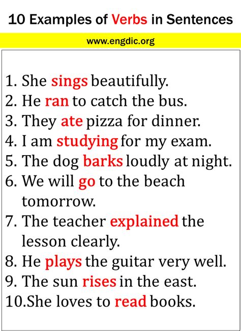 write 10 verb sentence
