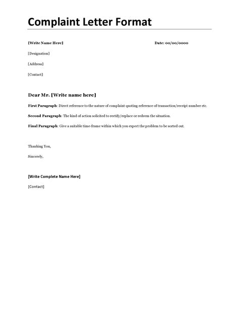 written complaint template